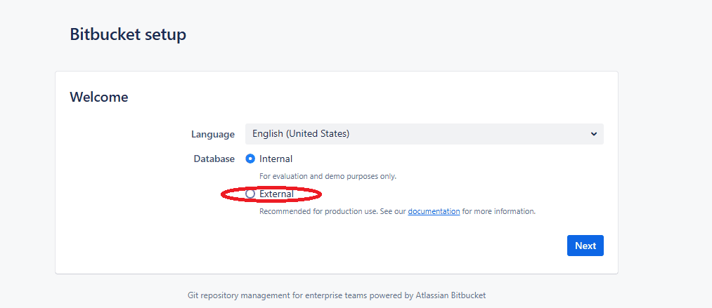 Выбираем язык. Русского Bitbucket нет, только English.