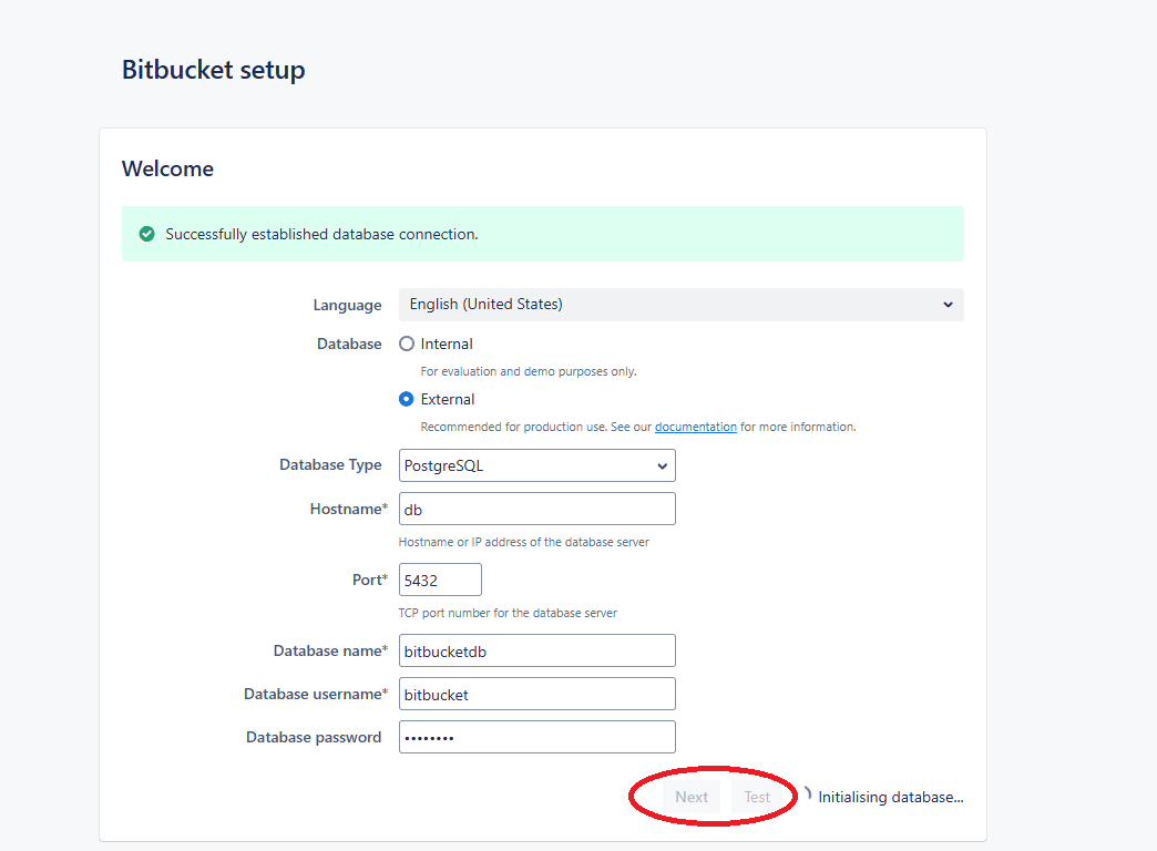 Установка завершена. Bitbucket готов к работе.